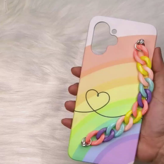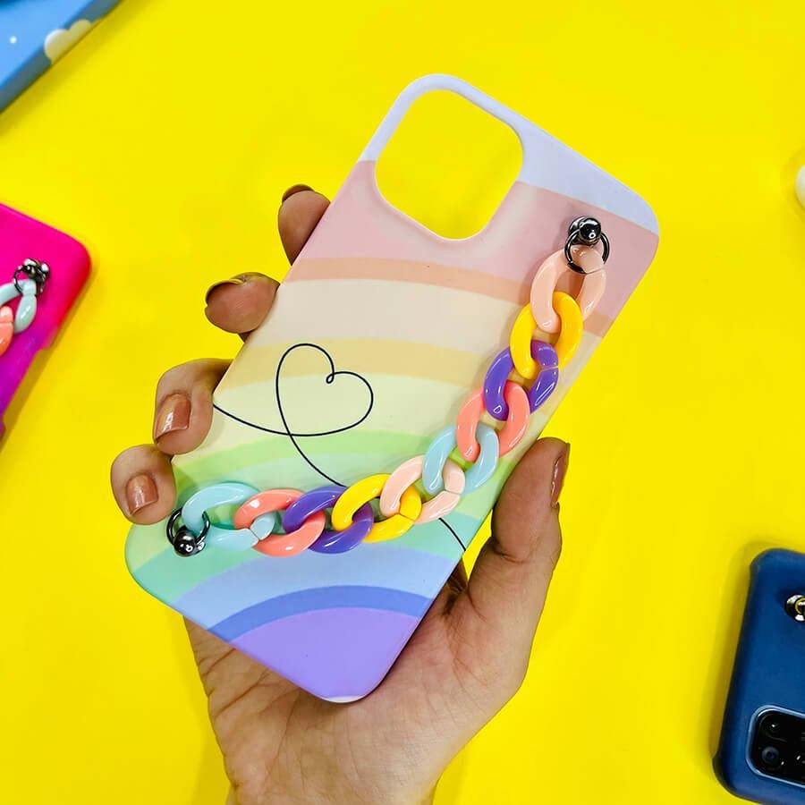 Add a touch of color and fun to your phone with our Colorful Rainbow Chain Phone Cover! This playful accessory features a vibrant rainbow chain design that will make your phone stand out from the crowd. Protect your phone in style and show off your unique personality with our one-of-a-kind phone cover.