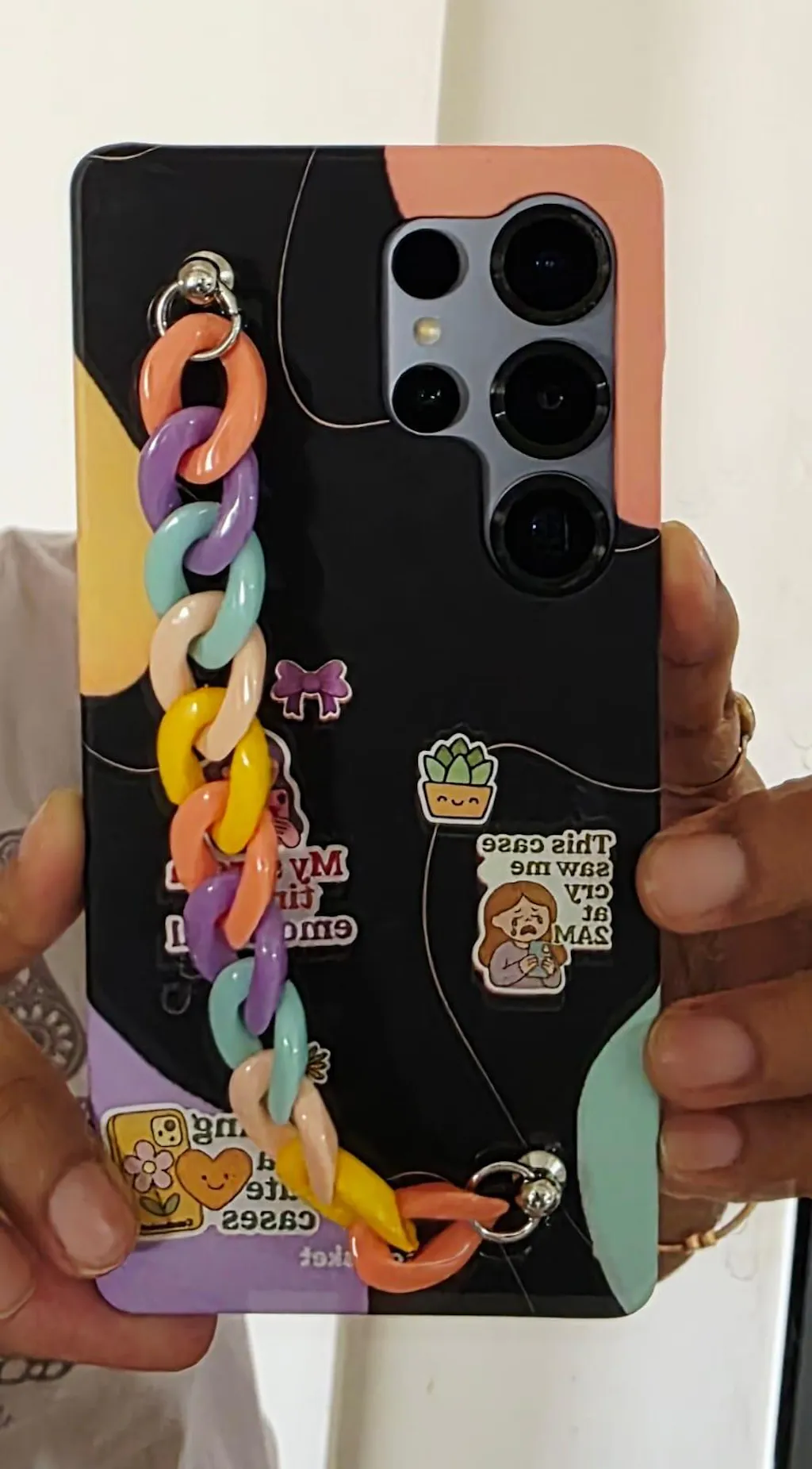 I was so surprised by the quality delivered. The soft silicon cover came back pretty and the hard cover with rainbow chain was so bright and quirky. The stickers that came with the cover were awesome too. Loved it all 💕
