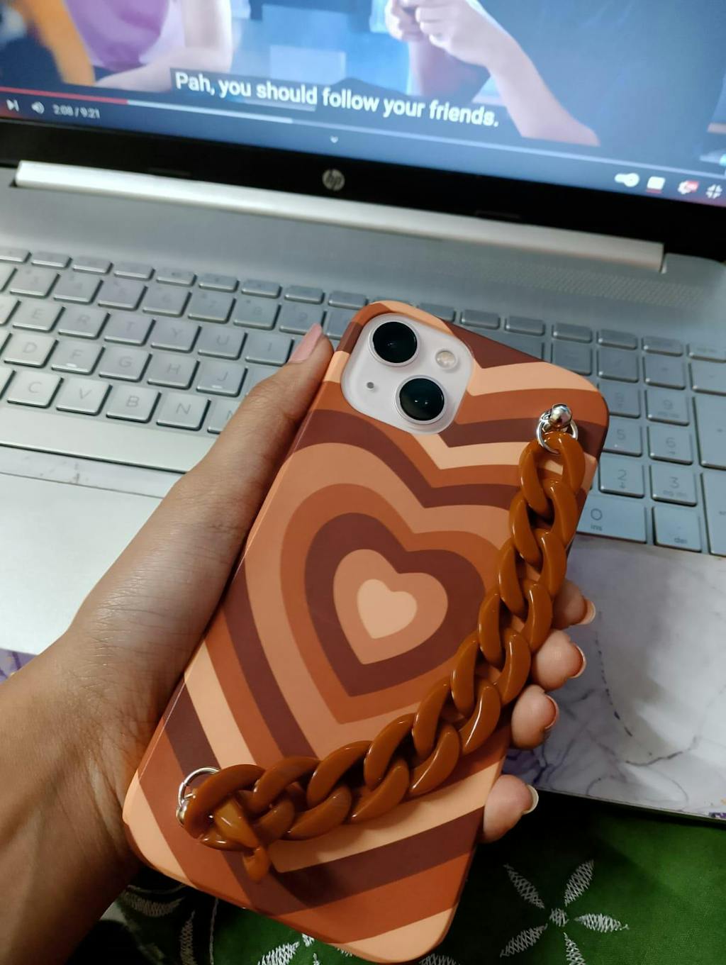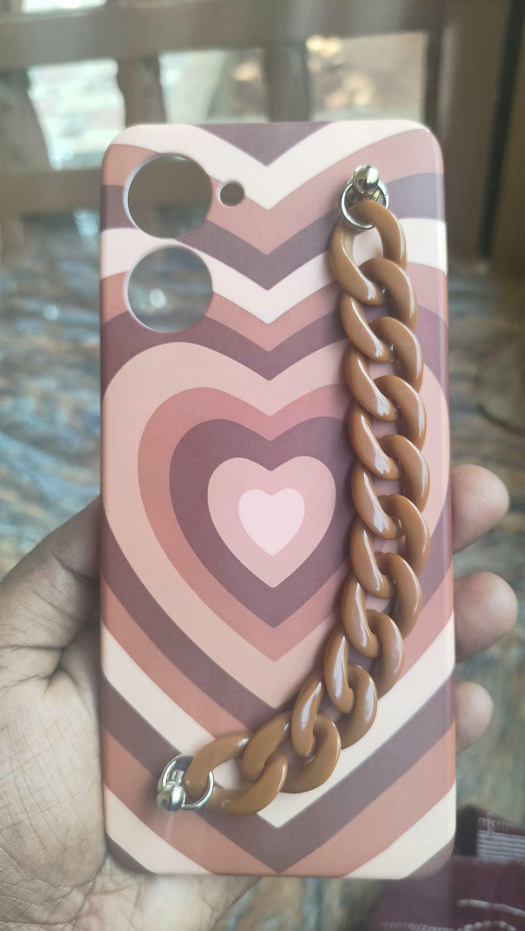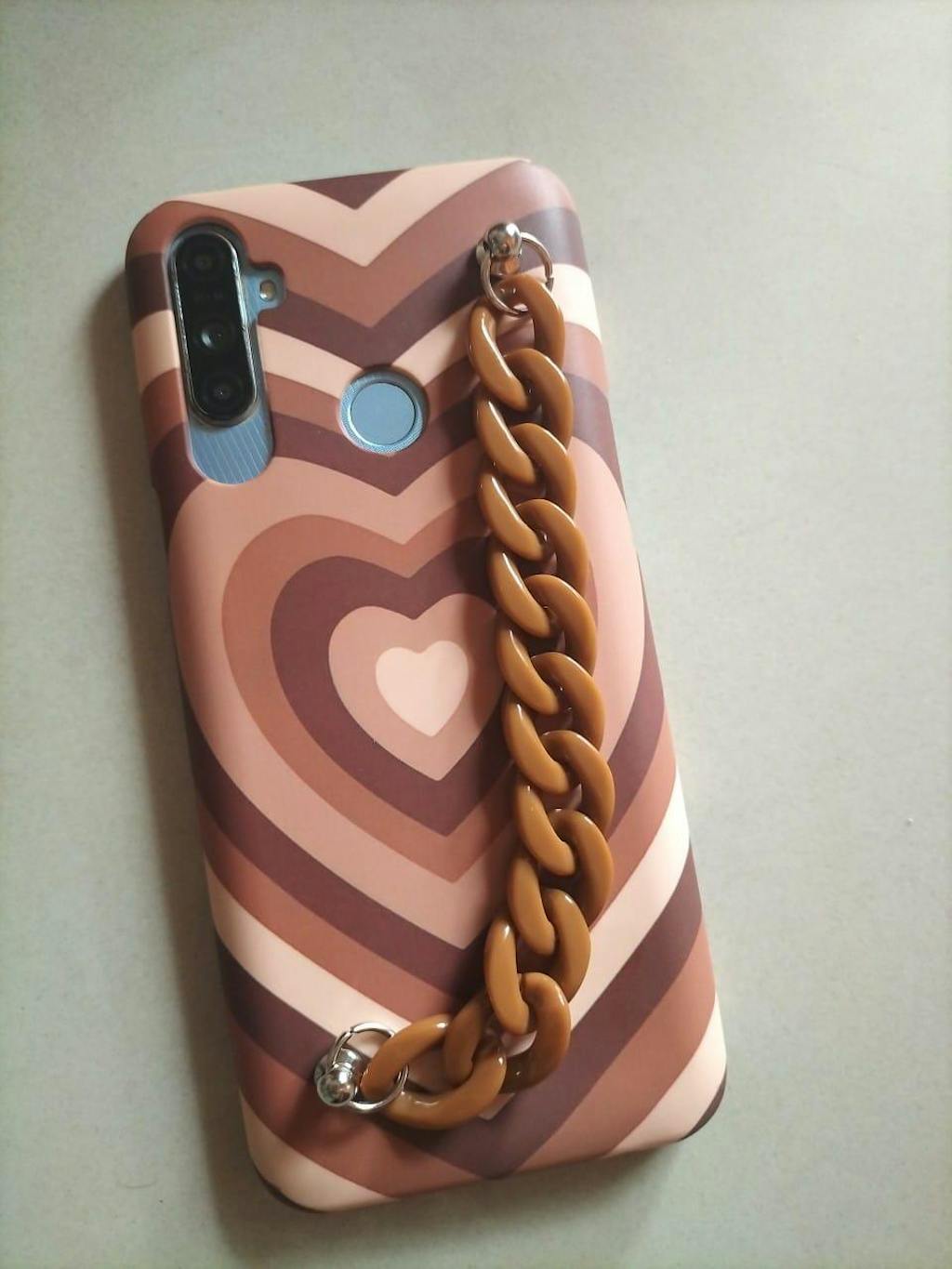 Keep your phone protected in style with this Y2K heart brown chain phone cover. Its quirky design is sure to turn heads and its durable construction will keep your phone safe from scratches and drops. Stay on trend and show off your playful side with this unique phone cover.